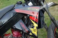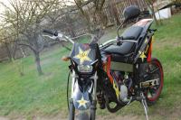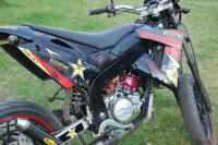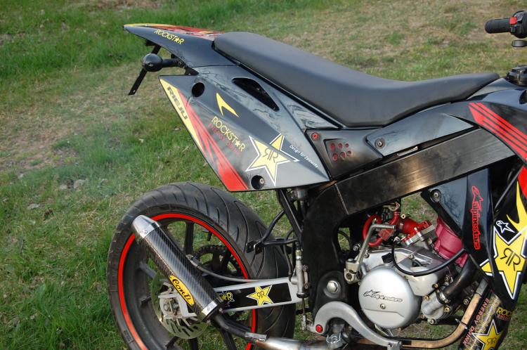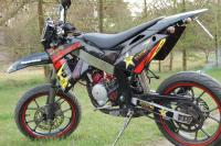 Bon on a monté le passage de roue sur la derbi à mon frère , je vous explique pas la galéééééééééééére, les trou étaient pas au bon endroit , les pattes non plus etc, on a tout adapté niquel ! Le rendu n'est pas comme sur la drd pro psk les carénages ne sont pas les même , mais je trouve ça super jolie !! Le week-end prochain mon frére va recouper ses carénages , car on le voit en haut la pointe du passage n'a pas la forme du carénages donc il va couper ses carénages pour bien ajuster tout , et les fils qui sortent des clignotants c'est pas sex .. Voilà , vous trouver ça comment ? :)1 point