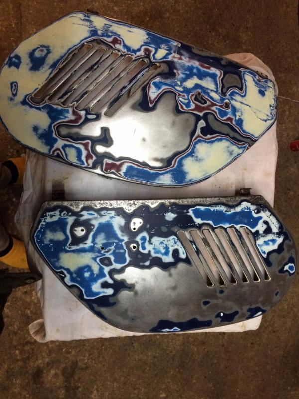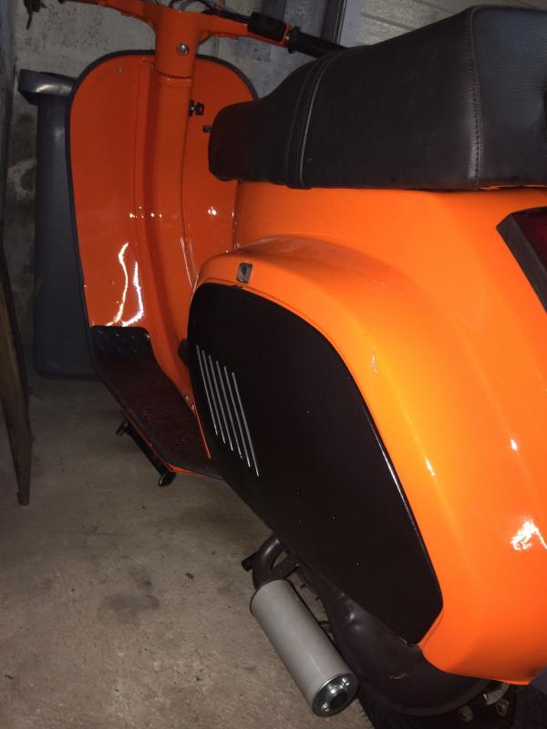 La plus grosse partie coque est fini, mais il va y avoir quelques modif... j'ai trouver des portières ajourées que j'ai poncer et repeinte...mais je pense les remettre en orange car le bicolore est pas top, pareil pour la descente de Klaxon qui passera en orange aussi. Un compteur aussi qui mérites encore quelques retouches au niveau de la vitres Une partie du faisceaux qui avait complètement cramer que j'ai refait et La Fourche gros balancier qui est arriver d'Italie, mais j'attend celle de PX pour faire l'adaptation du disque et du leche roue à l'avant Et la selle qui va sûrement changer aussi pour une selle Plate plus "racing" Pour le moteur , je l'ai redémarrer et débloquer les vitesses j'attend de bien finir toute la partie cycle pour voir ce que je met dessus. regarder une vidéo de ce que sa peux donner rien que en 85 cc bien préparer :1 point