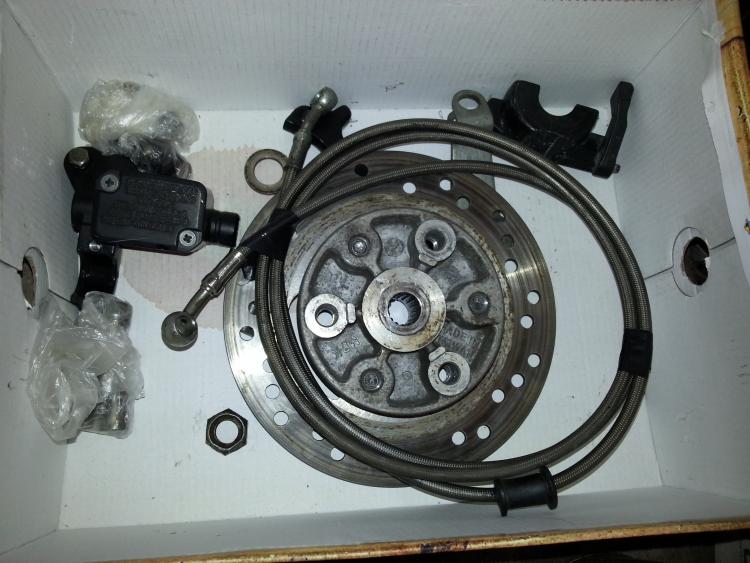 J'ai ^^ systeme. A disque arrière complet : patte , durite , maitre cylindre,levier, étrier , jantes , visserie.. la patte d'adaptation fournie sert a caler létrier sur ton bm minarelli vertical (bws,stunt...) -