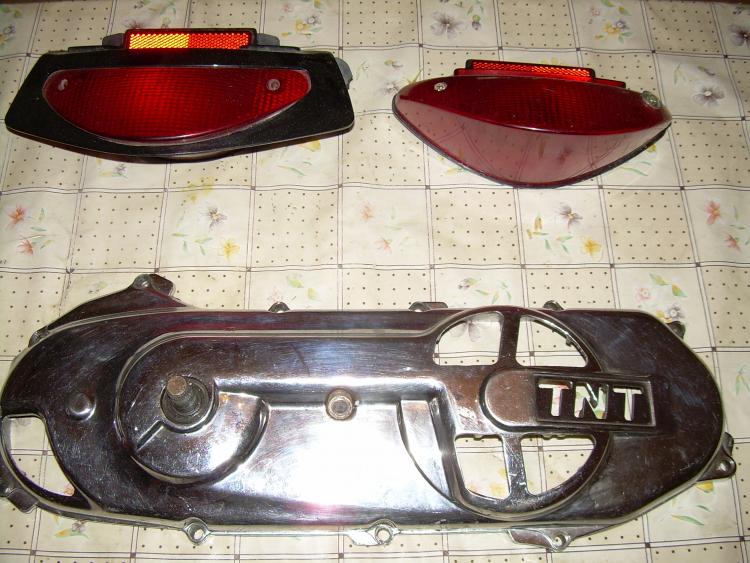 bonjour je vends diverses pieces de nitro et booster : - NITRO - - carter de kick chromé/ventilé TNT, - feux AR, - boîte a clapet DOPPLER en alu, - boîte a clapet d'origine (je crois), - BOOSTER- - carburateur de 12 avec starter auto et câble, - variateur d'origine, - allumage d'origine, - amortisseurs d'origine, - clignotant origine, - béquille centrale avec ressort, - poignée de gaz TNT alu, - correcteur d'origine, - embrayage avec ou sans cloche d'origine, - carrenage bleu métal 2004 (coque AV, tablier, coque AR), - phare avant 2004 noir avec ampoule d'origine, - feux AR 2004, type lexus, - aileron repose-main AR carbone avec feux stop a leds, - entraineur de compteur + câble... ainsi qu'une tete de fourche BCD... j'ai aussi un pot POLINI FOR RACE, rouillé mais je sais pas pour quel scoot ? (ni booster, ni nitro) ! envois possible dans toute la france en colissimo, a vos frais... paiement par cheque, mandat cash et eventuellement paypal... vendeur serieux et colis soignés... je cherche un carter de kick de qualité pour booster (Chromé/Ventilé, nardo, TnT, STR8,etc...) sinon proposez moi pour echange (si possible sur place)... Prix, Photos, et Renseignement par mail, après 1er contact par MP... d'avance merci a tous...