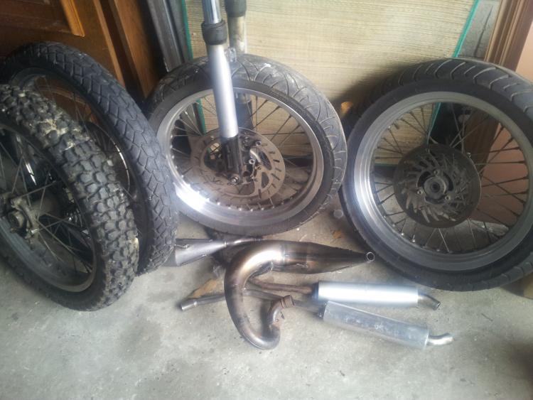 bonjour je vends mes pièces pour dt derbi ect .. : -Paire de jante dt polie sm pneus ect -Paire de jante enduro pneus ect -amortisseur conti -amortisseur origine -pédale de frein arr -feu lenticulaire -feu arr dt origine -étrier avant -guidon conti -paire de carénage réplica ktm / monocoque ktm. Photos/prix si intéresser merci ;)
