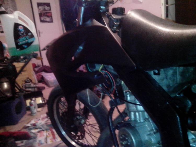 1. alors voilà j'ai du nouveau !!! en regardant un peu la moto de plus prés et en essayant ce petit truc je me suis dis pourquoi pas essayer d'y mettre les carénage avent de la DT ? donc voilà dite moi ce que vous en penser, moi en tout cas ça me plait ! le carénage placer et pas peint ! desoler pour la qualiter de la photo... et la avec le carénage peint : et coter moteur bientôt achat de l'allumage MVT prenium pour 150€ neuf !!! =)