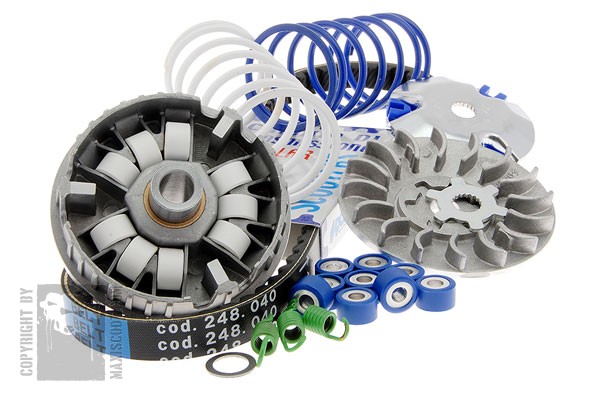 Si tu a 25 euros je te propose ceci --> http://www.maxiscoot...bles-30905.html Ce sont des galets réglable. Et oui 25e faut compter les frais de ports :bave: Si c'est pas possible, je pense que du 4.8gr ou 5gr sa devrai le faire. Pour t'es ressorts d'embrayage il te faut des souple renforcés (25%) chez malossi et stage6 ils sont blancs --> http://www.maxiscoot...trol-30911.html. En ce qui concerne le gicleur augmente le de 5 a 8 point au dessus de celui d'origine. Tu es en combien d'origine ? Ps; Faire bien attention !!! consulter des tutos pour démonter variateur ou embrayage ( je ne sais pas si c'est ton cas mais au cas ou :) ) Si tu as d'autre question n'hésite ;) -
