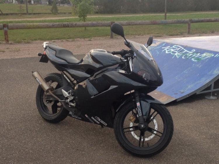 voilà , ma tzr , et j'aimerais changer un peu lestetique je vais commander , poigné noir blanc liserais blanc changer les rétros en noir et blanc , et il i a un pot src dessus , et je me demander si je met la bulle en noir , jesais pas j'attend des avis . et je vais bouger la plaque et le support de plaque et je vais en faire un maison avec des clignotants chromés et une belle ligne a larrire toute droite , merci de me donner des avis et elle est en gris entrasite