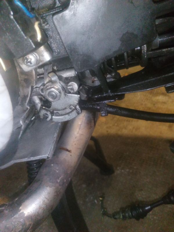 Voici la photo je pense que le ressort derrière falai faire un tour sur lui même pour que ça soit bien tendu car je lavai dévisser la pièce sur la pompe a huile ou le câble vient dessus car j'avais des soubresaut et le scooter marchai plus j'ai vu déjà l'antiparasite coulissant il tenait plus de plus le bout de la bougie est un peu manger à force donc je sait pas si kdoit changer aussi la bougie en tous cas c'est a cause de la pompe a huile que j'ai cassé moteur trois fois car la visse de purge laisse échapper de l'air et j'ai tester la pompe aucune goûté d'huile ne sort de la durite du carburateur donc je tourne au mélange pour l'instant et je suis encore en rodage. Je voudrais savoir si vous savez où trouver un collecteur pour ride race car j'arrive pas en trouver. Merci -