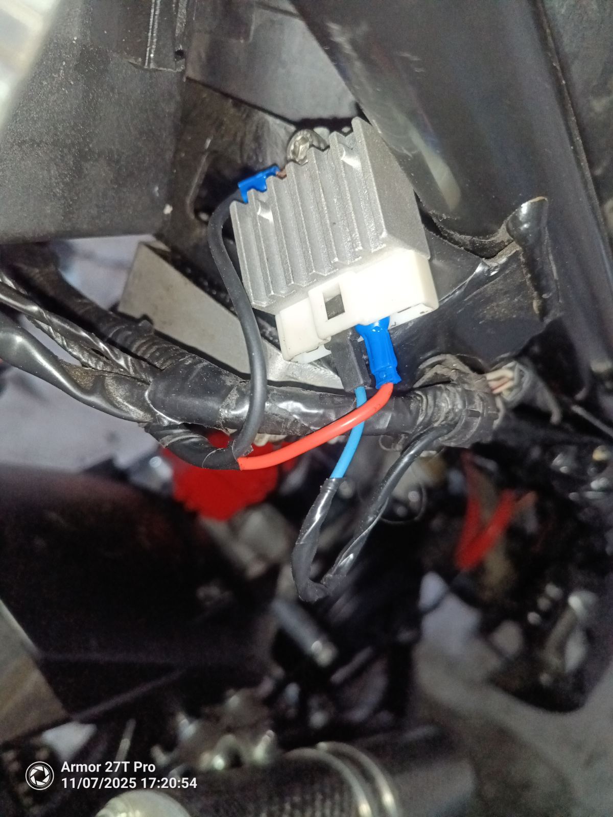 La semaine n'est pas fini mais... Le moteur démarre ! Le scoot n'est pas encore remonté, je n'ai pas encore fait de photos ou vidéo j'ai juste cette photo avant le pose du moteur Sur la photo on identifie un problème : le carburateur tape en plein dans le coffre. Et compte tenu des +/- 8cm de débattement de suspension on a clairement un problème J'ai essayé de comparer plusieurs inclinaisons de carburateur, pipe coudée etc: selon moi ça va taper quoi qu'il arrive. Donc voici un petit bricolage fait à l'arrache très loin d'être dans le règles de la mécanique 🤣 J'ai découpé le coffre puis mis une plaque aluminium rivetée qui rehausse une partie du coffre de 9cm avec sur le côté une tonne de mastic puis de la peinture pour cacher l'horreur... Du grand art, j'ai honte Ce problème étant résolu, je m'attaque à la partie faisceau électrique et petite surprise : il y a de la modif à faire. J'ai eu du mal à recueillir des infos fiables mais apparemment je suis obligé de rajouter un second régulateur de tension (type booster avant 2004). J'alimente le régulateur d'origine avec le fil jaune du stator (allumage Doppler identique au MVT) et j'alimente le second régulateur avec le + et le - batterie + le fil blanc du stator... Un vrai bordel. Si quelqu'un en sait un peu plus n'hésitez pas car j'ai vraiment peu d'infos là dessus, impossible de trouver un schéma électrique correct, impossible de trouver le schéma de fonctionnement du régulateur d'origine etc... J'ai juste trouvé ça sur une notice MVT sur le net (qui n'apparaît pas sur ma notice doppler) J'ai démarré avec le fil jaune de branché uniquement mais évidemment les lumières et le compteur s'allume et s'éteint, le tension doit faire le yoyo. Donc achat d'un régulateur de tension type booster mais le temps de la livraison je ne finirai tout ça que le weekend prochain. En attendant je vais quand même essayer de rouler un peu avec (avec régulateur de tension débranché pour ne pas tout cramer) histoire de commencer à régler le carburateur. Je ferai des photos et vidéos bientôt 😁
