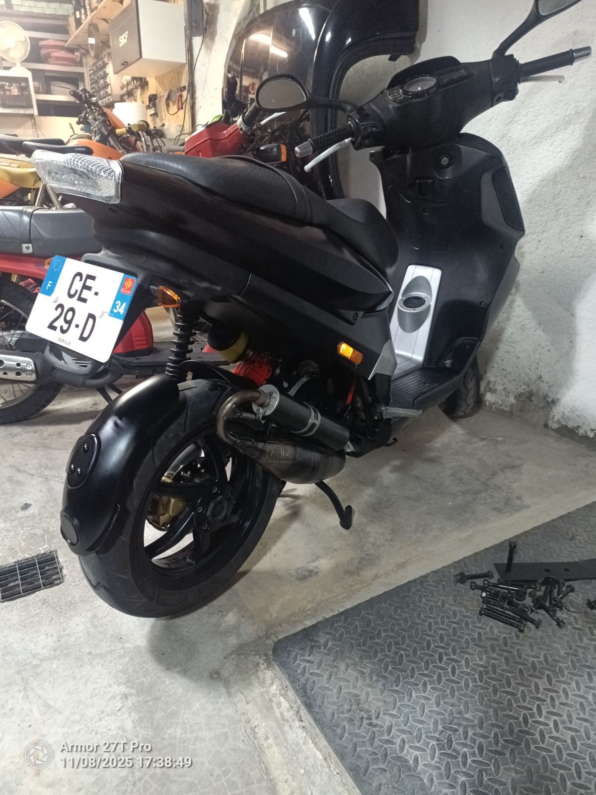 Salut ! Pour ceux qui ont déjà pu suivre mon projet et pour les autres, bref résumé : Depuis 2016 j'ai commencé un projet portant sur un Piaggio NRG, après avoir changé deux fois de base, dix fois d'avis et surtout avoir rien glandé pendant presque dix ans, nous voici en 2025 J'ai recréé ce nouveau projet pour plus de clarté, l'ancien post partait un peu dans tous les sens. Nouveau départ donc ! Voici tout ce qui reste du projet : un bloc moteur avec toute la configuration qui va bien, jamais démarré et même jamais fini de monter Petit résumé de la configuration : Cylindre 70 Metrakit Prorace 2, Pot Stage6 R1400, clapets malossi, cale et pipe Stage6, carburateur 28mm VHST, allumage Doppler, pack variation Malossi etc... Toutes ces pièces sont neuves et traînent chez moi depuis presque 10 ans. Il manquait de la motivation, une envie et surtout une base cycle sur laquelle mettre tout ça. Voici la base que je viens d'acheter tout récemment: un Piaggio NRG MC4 Il est tout démonté pour quelques contrôles, pour l'instant on se contentera de ces photos mais j'en referai des plus belles, promis Il est roulant. Il est équipé d'un cylindre Malossi fonte (un 50 sûrement) et d'un pot AGP. Ça marche pas fort mais ça se déplace bien quand même. Cette fois ci j'ai bien l'intention de finir tout ça, voici les étapes du projet: 1- Remettre au propre le NRG, il y a quelques bricoles à faire pour qu'il soit nickel. Je compte lui laisser un aspect proche de l'origine, pas de tuning ici mais pourquoi pas une peinture ou autre... 2- Passer le NRG au contrôle technique avec le moteur actuel, ça m'évitera de débarquer avec une grosse configuration et de devoir soudoyer le contrôleur 3- Réouvrir le bloc qui traine depuis 10 ans pour contrôles et remplacer roulements, joints etc 4- Refermer le bloc, assembler toute la configuration 5- montage du bloc Prorace et Gaaaaaz Plus de news prochainement