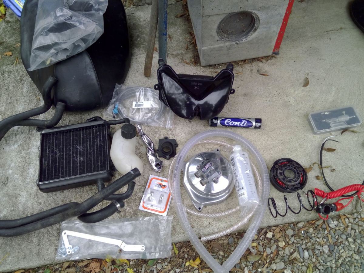 Salut, Suite à l'arrêt de mon projet je vends ma partie cycle en pièces, les pièces seront ajoutées au fur à mesure. Les prix sont sans les frais de ports. Pour info je suis vendeur premium. Radia + vase Nitro: 24€ Robinet+durite essence neufs: 7€ Carter de kick poli état moyen: 5€ Embrayage Stage6 + ressorts neufs 29€ A bientôt par Mp. -