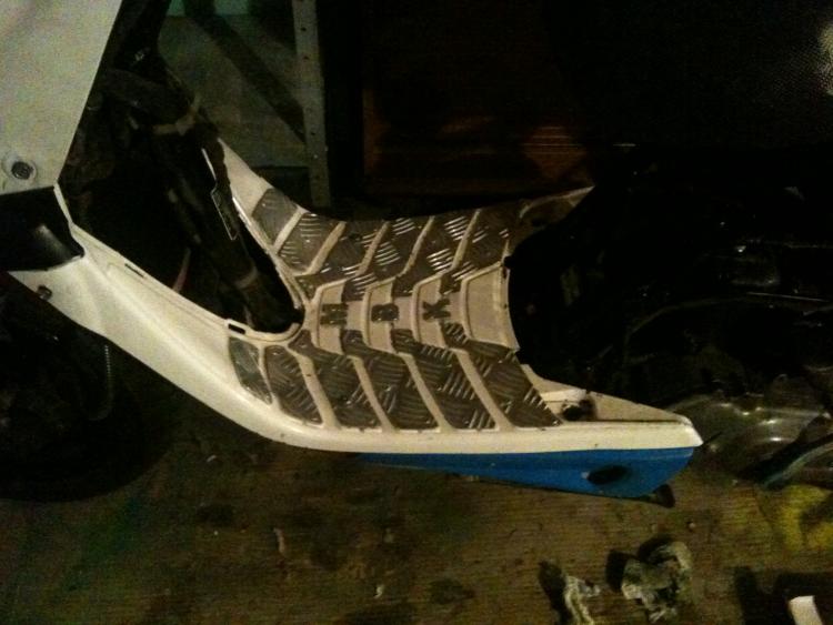 Salut a tous, je me sépare de mes carénages, -Face avant moulé au niveau des 3 trou d'aération -Marche pied maison alu -Bas de caisse ( on ne voie pas sur la photo ) -Optique 4 Halogenes -Sabot ( pas sur la photo, patte de fixation casser mais refaite pour l'attacher. ) Proposez-moi prix, ou j'étudie échange. -