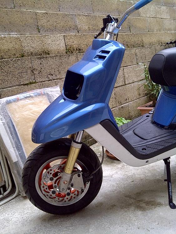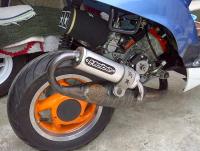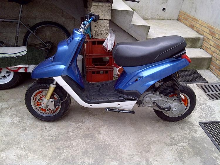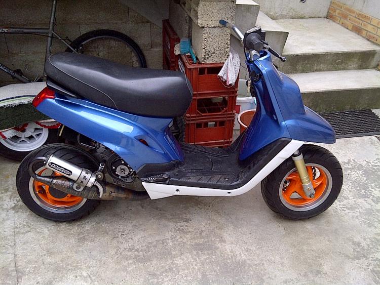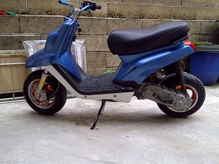 22. Salut a tous, nouveau projet sur une nouvelle partie cycle : mbk booster 2004 (Au passage toute la partie cycle de ludix est à vendre ....mp) Le projet est abouti a 90% reste quelques bricoles a fair comme vous pourrez vous en apercevoir grace aux photos .... configuration moteur: -haut moteur HEBO REVOLUTION,cylindre à barrette.culasse à plot -bougie NGK B10 EVX -vilebrequin DOPPLER ENDURANCE 2003 -roulement STAHE 6 -allumage PVL digital TVX RACING -pot HEBO REVOLUTION -carburateur PWK 28mm -pipe droite STAGE6 RT -boîte à clapet VFORCE 3 -filtre a ir double mousse Stage6 -pack polini GP -embrayage metrakit pro race -transmission finale origine Partie cycle: - Fourche BETA ARK 32mm - Disque avant 220mm METRAKIT . - étrier 2 pistons PEUJEOT SF - Jantes DE GILERA STALKER 10 pouces - Tambour arrière 110mm plaquettes malossi - Pneu taille basse SAVA BOGART photos: