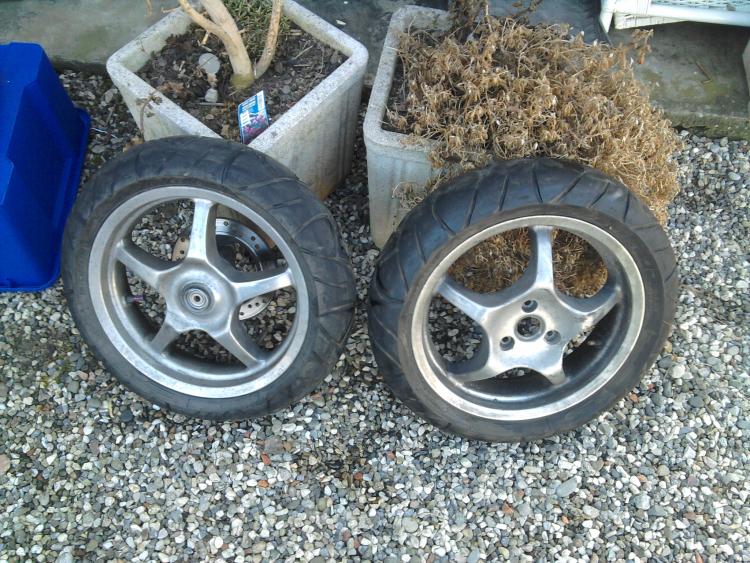 18. Bonjour, comme indiquer dans le titre je vends des jantes de nitro polis*. Prix : 95 FDPC avec pneu michelin pilot usure de 15% max. possibilité de fournir la viserie ainsi que le moyeu + disque + étrier avant et arriére + fourche paoli nitro original le tarif reste à discuter !