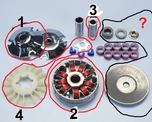 BONJOUR, JE VEUX MONTER LE variateur POLINI SUPER SPEED CONTROL EVO : https://www.scooter-system.fr/catalog/ref-1112-variateur-polini-super-speed-control-evolution.html AVEC EMBRAYAGE POLINI FOR RACE 3 ET CORRECTEUR DE COUPLE GRANDE PLAGE ET COURROIE POLINI GRANDE PLAGE PAR CONTRE SUR LA PHOTO ON VOIT TOUTES LES PIECES, J'AI QU'UN CANON, J'AI QU'UNE PIECES EN HAUT A GAUCHE DE LA PHOTO SUR 2 ( JE CROIS QU'ON DIT LA JOUE ) J'AI PAS L'ECROU DORE DE EN HAUT A DROITE NI LA RONDELLE JUSTE A GAUCHE J'AIMERAIS SAVOIR L'ASSEMBLAGE, DANS QUELLE ORDRE ? NIVEAUX RESSORT J'AI UN POUSSE BLEU ET EMBRAYAGE VERT AVEC L EMBRAYAGE ET LE CORRECTEUR DE COUPLE, J'AI UN POT SITO ET carburateur 17.5 LE RESTE D'ORIGINE ET LE GICLEUR JE DOIS L'AUGMENTER ? MERCI -