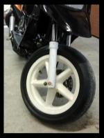 Roue avant de Rocket blanche + pneus slick Stage6 + fourreau blanc : 90euros