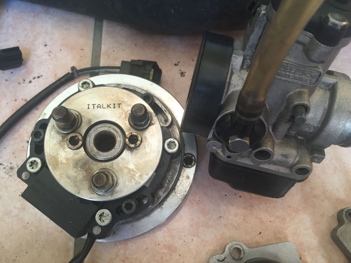 Yo tout le monde comme promis quelque photo !!! Voici le 28 VHST avec tulipe ! (Ps: désoler j'ai pas réussi a tourner la Photo ) Allumage PVL bidalot Factory Acheter Occase , Salle sur la photo ! Un 70 stage mk2 revendu aussitot ! la cale admission Stage6 . Disque , que j'ai mis a l'avant et que je galère a adapter un étrier a l'avant vu que j'ai une fourche de Stunt.. si quelqu'un connais le problème..! Non non c'est juste pour m'amuser au Run de ma ville ! -