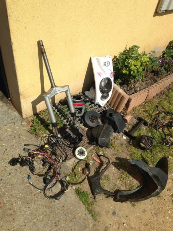 Bonjour je vends pieces de Stunt Fourche 20e Marche pieds 15e Tablier 15e Bas moteur avec vilebrequin et transmission 40e variateur s2br neuf avec galets 40e Pipe polini avec boîte a clapet big evo 40e Jantes de rocket Ludix Allumage 20 Feseaux électrique avec tous les boîter 330e Plastiques 5e pieces Ludix blaster Tablier marche pied et bas de caisse avec sabot noir origine 80e le tout sinon 30e pieces Radiateur 30e