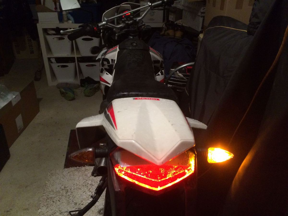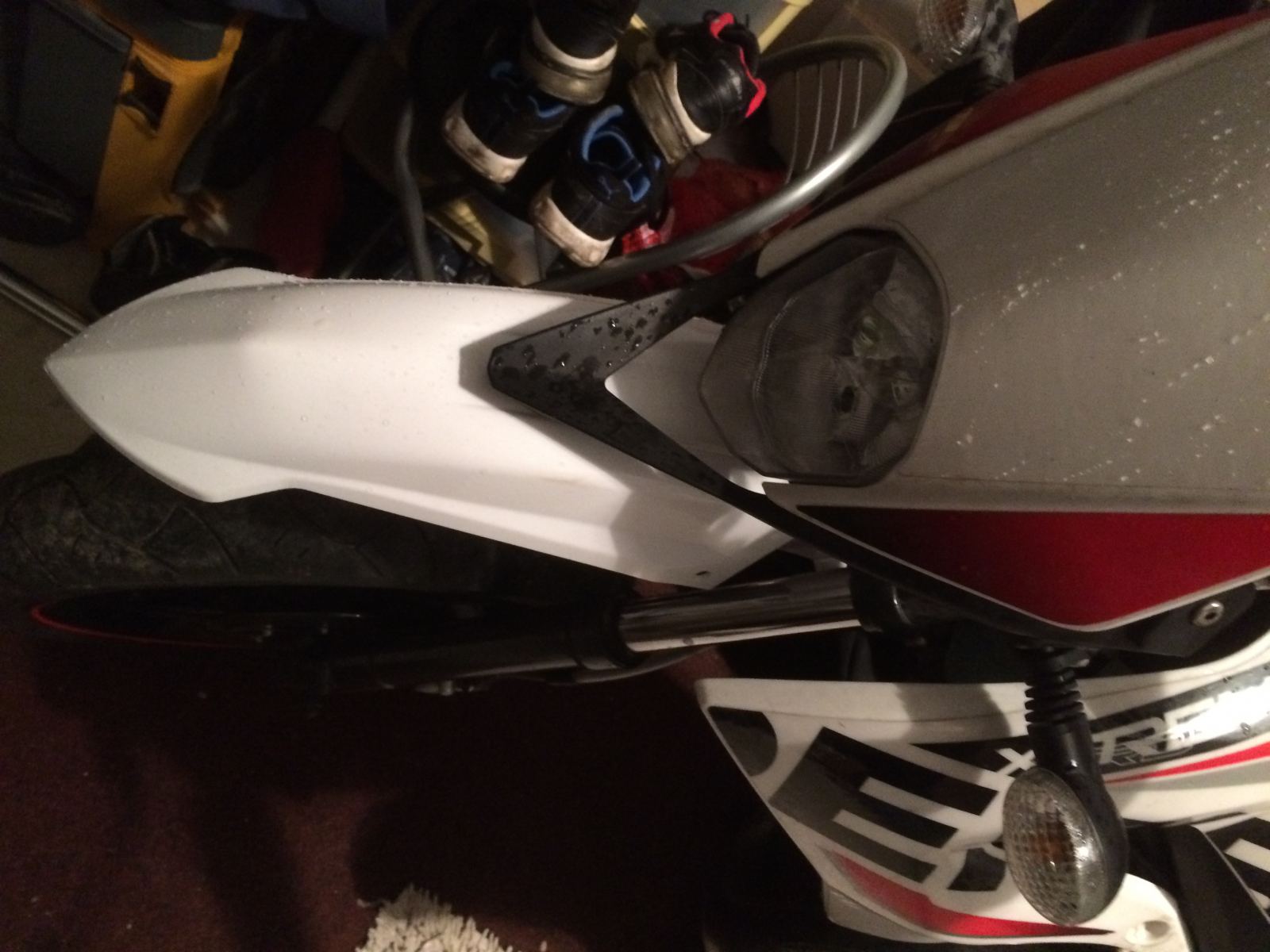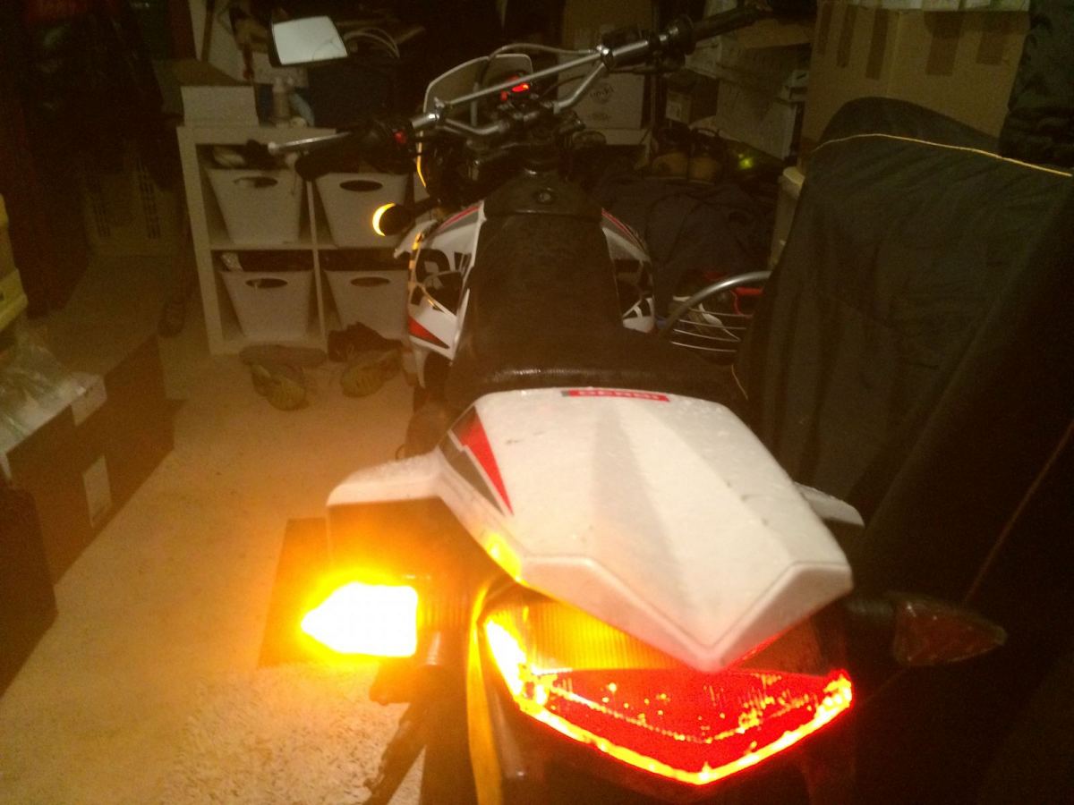 ~ 11/01/2016 ~ | - | Bonjour | - | '____________________________________________________________________' J'ai commencer la bête. J'ai fait la partie " Soft " - Electricité ( Clignotants / Batterie ) Changer - Garde Boue Changer - Pignon et Couronne démonté '____________________________________________________________________' ' Garde Boue ' ' Clignotants après changement de Batterie ' ' Pignon et Couronne ( Envoyer au magasin pour commander le nouveau kit chaîne ) ' ' Voilà, dites moi vos avis ! '