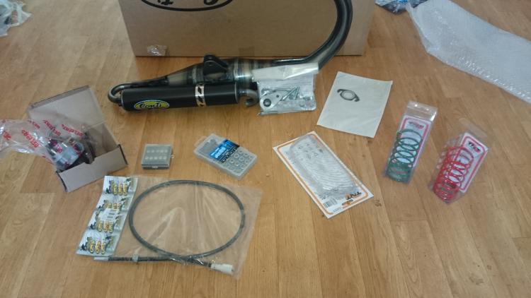 Bonjour, J'ai monté un HM conti pro racing, pot conti CHR V3, carburateur Dell'Orto 17,5 gicleur 82, baa tube retiré, galets 4,5! Pour démarrer le booster une fois le carburateur monté j'ai mis de l'essence dans le puits à bougie (le booster démarrait pas), le booster à démarré je suis même parti faire 20km! Mais je suis obligé de mettre à chaque fois (depuis 1 semaine) de l'essence dans le puits pour partir, il ne redémarre qu'à chaud! J'ai penser au starter!