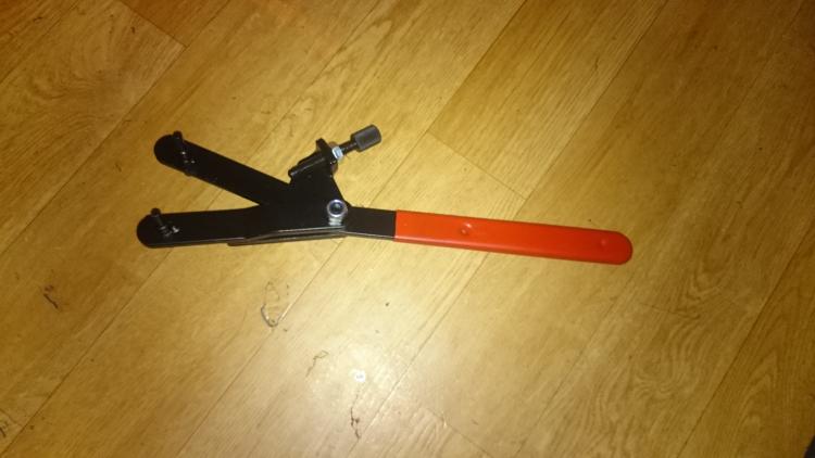 Je n'est pas acheté réellement une clé pour dévisser l'écrou de la cloche embrayage, c'est un outil pour serrer les mâchoires de l'embrayage pour faciliter la mise des ressorts! -