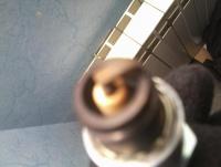 Photo couleurs de la bougies , il me semble que c'est pauvre , car c'est blancs je trouve ,j'attends vos commentaire et je fais quoi augmente le gicleur ? La vis de richesse est pas mal dévisser je trouve --' Bougies neuff !!