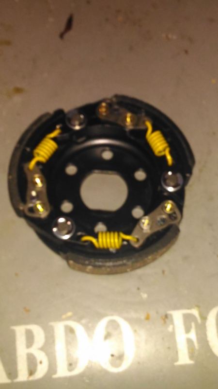 Pour le variateur je pense que la plus petite rondelle (photo droite) sert à remplacer celle que j'ai actuellement sur le variateur, celle du milieu est la bride limitatrice et pour la rondelle ou la canon rentre à l'intérieur je ne sais pas! Pour l'embrayage j'ai les vis serré à fond, je vais l'installer ce matin j'espère pouvoir les régler ensuite sans retirer la cloche! -