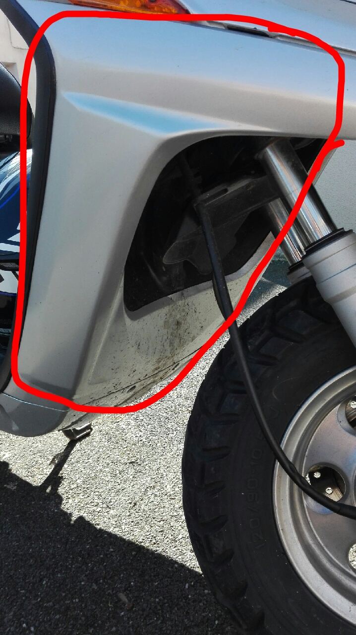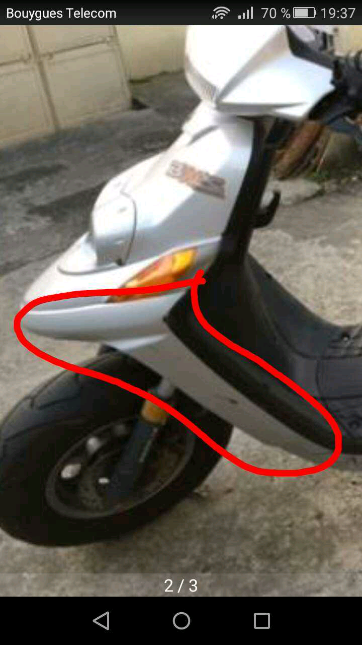 5. Coucou, voilà j'ai eu un petit accident avec mon scoot et j'ai eu quelques dégâts. J'ai acheté un tablier avant et cache feux mais il me manque une pièce et je ne sais pas où la trouver, je ne sais pas comment s'appelle cette pièce. Y aurait il quelqu'un qui s'y connait ? PS : c'est la pièce entourée en rouge