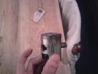 24. mon nouveau cache est de diametre rond donc il ne longe plus le cache-moteur et une partie du cilindre est a l'air peut être a cause de ca ?! le bout des ailettes de ma volute sont morts sûrement a cause du nouveau cache peut être a cause de ca cela ne refroidit plus bien qu'en pensez vous ?? a moins que ce soit une coincidence et que je roulais trop pauvre ... voilà mon piston en l'etat il a pris un sale coup avec cette amorce ^^