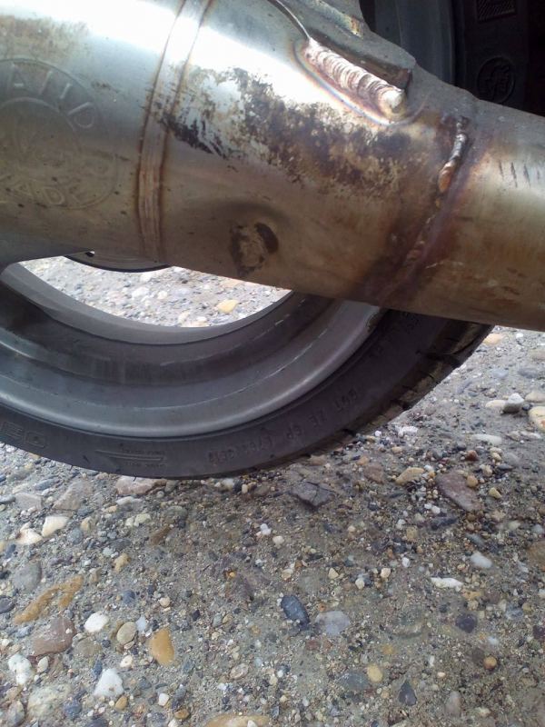 4. Bonjour j'ai un gros problème avec mon scooter, j'ai pris un dosdane avec mon pote a 80km/h lui n'a rien mais moi ma béquille a tapé sur mon pot et la un peu enfoncer (voir photo).. mais le problème est que quand j’accélère sa pète hyper fort et le scooter avance pas et donne des accoues, d'ou cela peut venir ? merci d'avance.