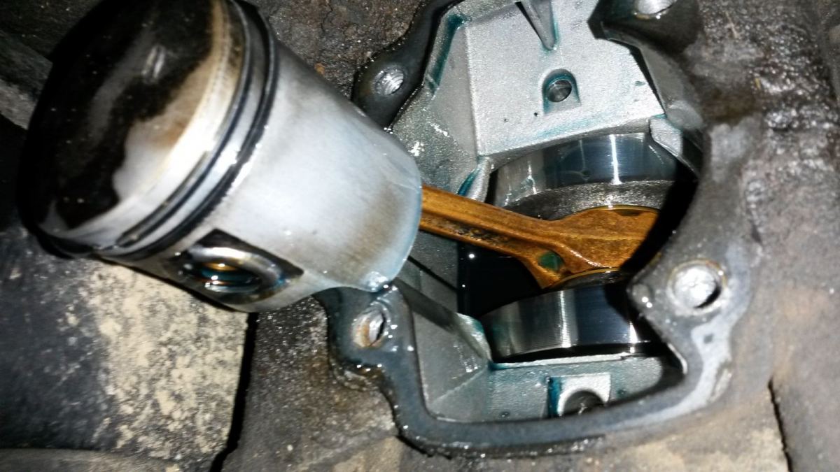 Je tente de démarrer pour faire encore tourner le moteur afin de continuer à tenter de voir couler de l'huile en sortie de la pompe, le kick est très dur. Je me dis "hou pinaise, un début de serrage ?" et je démonte le haut. Horreur ! Le bas moteur est rempli de l'huile bleue du réservoir d'huile (celle du mélange est jaune-marron). Y a-t-il un lien direct entre la pompe à huile et le bas moteur pour que le réservoir d'huile se soit vidé ainsi dedans ? -