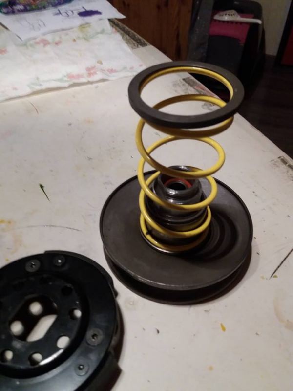 donc comme sur la 3 eme photo , si l embrayage viens par dessus . car sur la première foto je l avais mi sur la base du correcteur de couple puis le ressort et l embrayage par dessus -