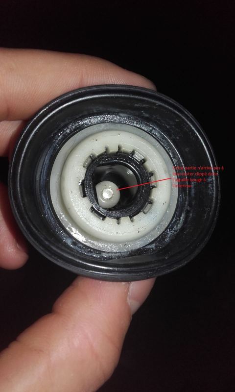 2. D'accord je posterais des photo dans peu de temps, sinon ce qui est par dessus l'aiguille pour la maintenir (un genre de capuchon blanc) ne ce coince pas parfaitement et l'aiguille bouge verticalement toute seule dans le boisseau, cela vient-il de là ? Si oui comment régler le problème ? Merci beaucoup.