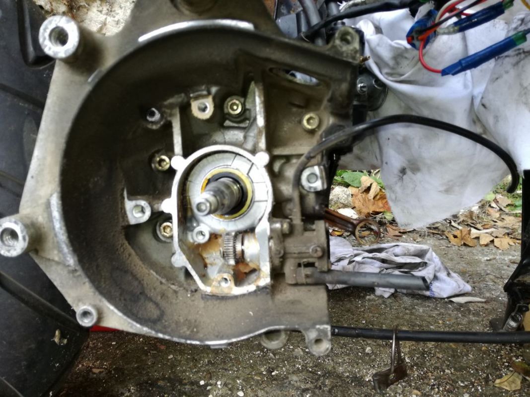 Ca y est je me lance, démontage commencer. 1ère étape Démontage allumage, variation, carter transmission, carburateur, pipe admission, haut moteur... Turbine neuve de prévu pour le remontage. Petite question.. Es ce que je peux tout virer ou dois je garder les pièces pour la pompe à huile, sachant que l ancien proprio la enlever. Si oui comment dois je m'y prendre ? La petite durite est relié au carburateur es ce que je peux l enlever aussi ? Question bête, es ce quelle ne m enverrai pas de l air dans le carburateur étant donné que les pièces y sont encore et doivent certainement tourner ? Nettoyage du carter, ressort, noyau de kick prévu. Un bon nettoyage s'impose aussi Es ce normal la couleur bordeaux/rouge ? Roulement rester coller Petite technique pour l enlever en douceur ? Le chauffer au decapeur ? Sympa l arrache volant soit disant adapté ! mémo pour la prochaine fois, ne pas serrer les vis au max, car elles ont explosé les cosses du Stator du coup Stator hs. Du coup 2 choix s offre à moi L adaptable sans platine 39€.. donc à récupérer mon ancienne platine. Et le complet 89€, lequel prendre ? Sachant que les 2 sont d'origine. Démarreur à changé Prochaine étape, démontage roue, système de frein arrière, carter moteur et nettoyage des pièces démonter. -
