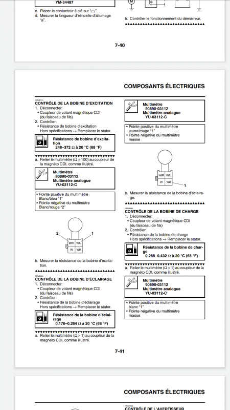 7. Slt essaie de nous faire une photo de la machine, si possible aussi de la plaque constructeur. Une bougie même neuve peut avoir un défaut.. Contrôle à l'aide d'un multimètre le stator et le régulateur de tension.. Généralement même neuf les carburateur il faut les réglé, gicleur principal pour le haut régime, la hauteur d aiguille pour la monter en régime, et la richesse pour le bas et mi régime. Bon c'est pour mon scooter mais le principe reste le même. Ca peux venir du stator mais c'est rare qu'il lâche.