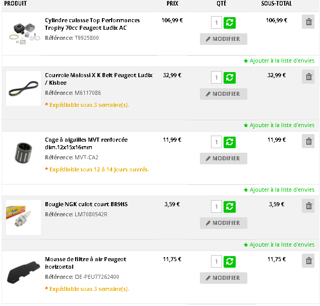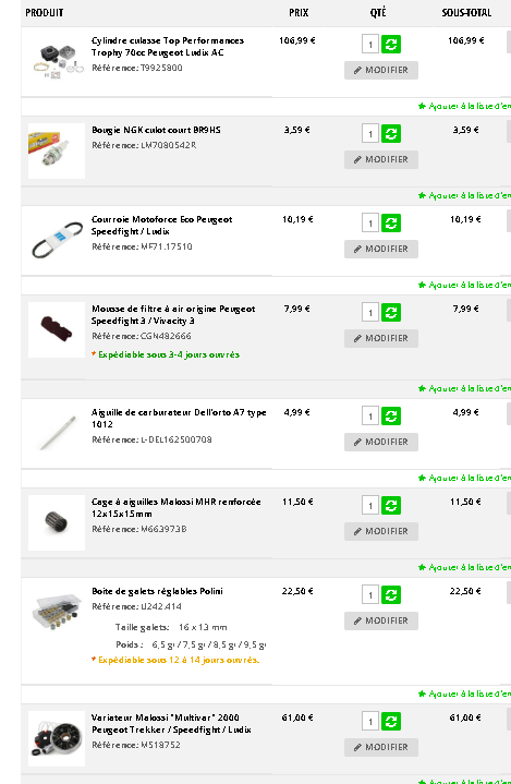 Ben voilà j'ai tout commandé je vous commenterai les résultats une fois tout ça bien régler en esperant que marche bien, j'éspère faire un 110 vitesse max avec une configuration 70. Salut les gars si vous voulez m'aider c'est franchement de refus je vais avoir besoin beaucoup d'aide! Ah et j'ai enlever le boîte de galet réglage je les commenderai aiileurs -