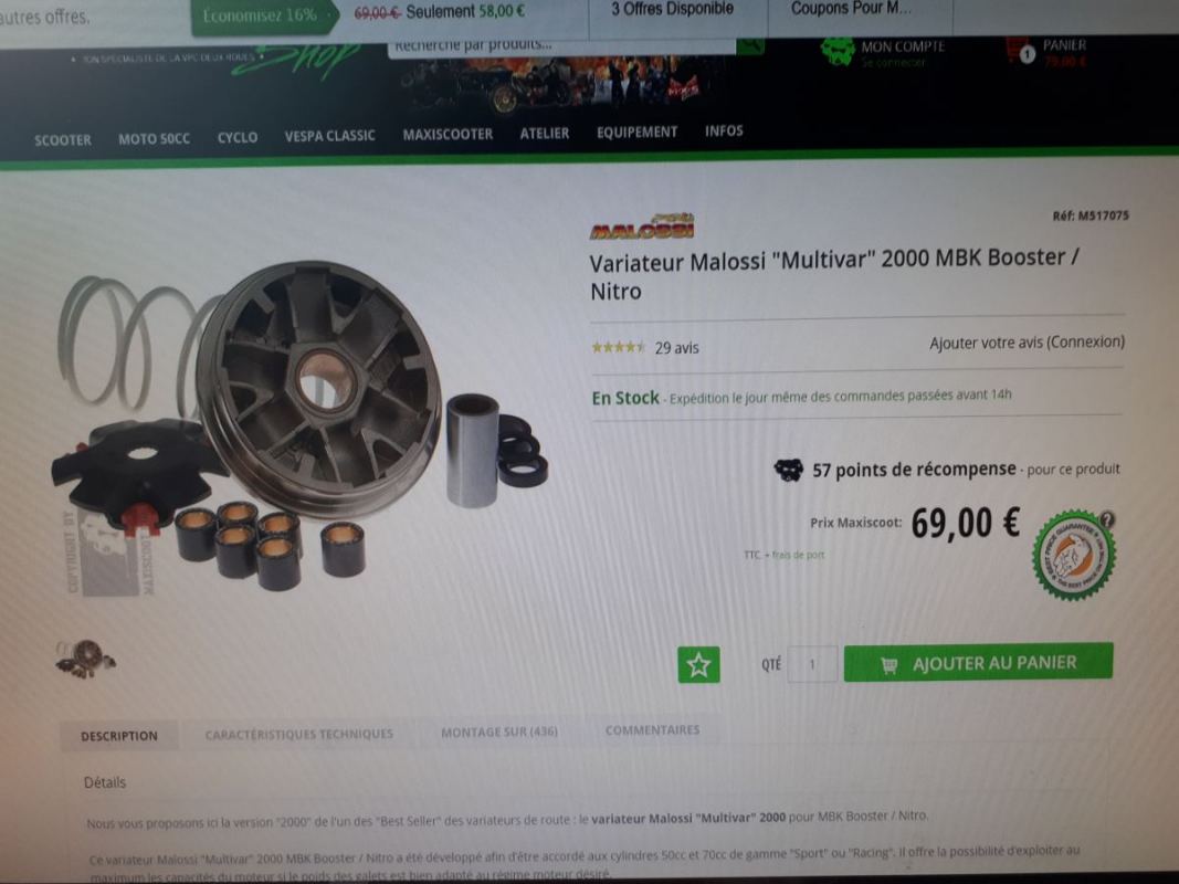 Salut à tous je vais être très bref. Quoi de mieux entre le variateur stage6 sport pro ou le malossi multivar 2000? Sur booster débrider carburateur 17.5 etc.. merci à vous ! -