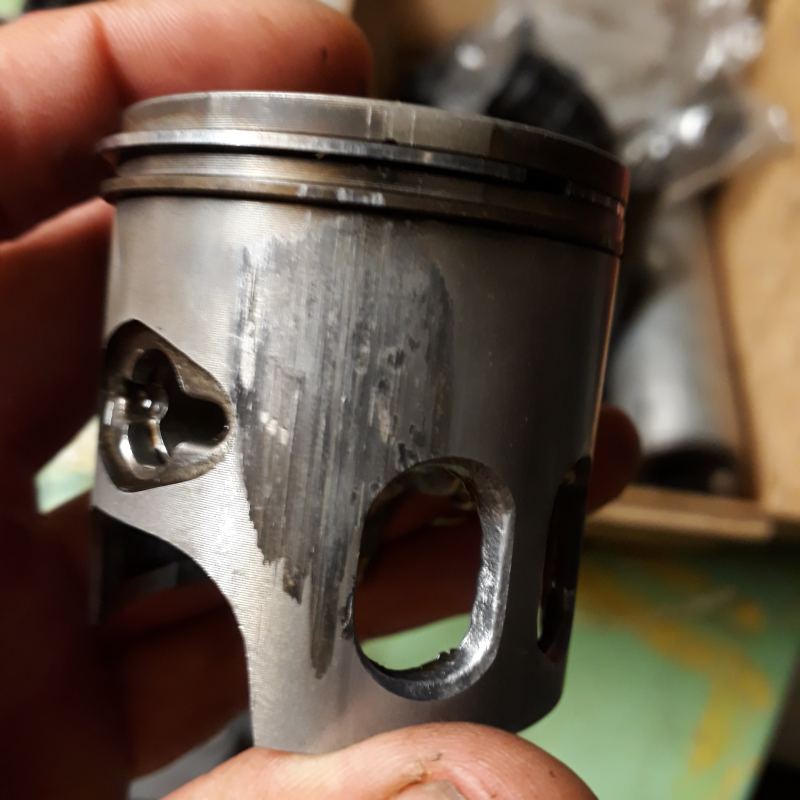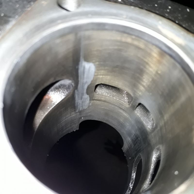 Bonjour à tous, voilà mon problème, j'ai monté un kit 70 polini corsa sur mon booster et il a serré instante, je recherche la cause! Je vais donner un maximum d'info D'abord ma configuration est la suivante : -Pot Yasuni R - Vilebrequin Artek K2 neuf monté par mon mécano pro juste avant le kit 70 - Kit 70 Polini Corsa + clapet carbone + gicleur 88 + bougie Champion l78c (qui font tous les trois partie du kit) - carburateur Dell Orto 17.5 - boîte à air d'origine non préparée mais avec mousse rouge malossi dedans - Admission d'origine - Variateur Stage6 Sport Pro, galet de 5.5g - Embrayage Malossi Delta Clutch , cloche orgine - Ressort de poussée Malossi rouge (avec torsion controller) et ressort d'embrayage Malossi rouge - boîtier Cdi Top perf à avance variable (le rouge) et clavette décalé - Transmission origine - Huile Ipone R2000rs Donc voilà, j'ai monté le kit, je me suis basé sur le fait que ma pompe a huile donne 1.7% (car j'avais décider de garder le graissage séparé) donc j'ai rajouté 0.3% d'huile dans mon essence pour être sur du 2%, j'ai bien fait chauffer, j'ai fait un test de 3/4km niquel puis le lendemain pour aller au taf j'ai fait à peine 10km et bam une amorce!! Je rentre, je démonte... un début de serrage au 4 coins, donc je prend mon cylindre piston (tout neuf, 15km à 200euro, ca fait chèross du km!) et je l'amène chez le mécano qui ma monté le vilebrequin voir ce qu'il en pense, pour le cylindre c'est good avec un coup de rodoir on vois plus rien. Pour le piston, avis mitigé dans la team, les segments sont très bon (on sent casi rien avec l'ongle) et sur le piston y'as pas grand chose et en gros après discutions il en ressort que c'est sûrement jouable en rattrapant ça au papier de verre. Donc je fais ca à la maison, j'en profite pour retirer la pompe à huile (histoire d'écarter le problème d'une pompe peu-être défaillante), je remonte le tout et ca remarche (en remontant je me suis apercu que j'avais ptete un peu trop dévissée la vis d'air (donc de richesse?) et que le problème venais sûrement de la?!). Entre deux mon frangin (qui a de meilleur notions en méca que moi) me dit que c'est peu-être un peu légé le gp de 88 et donc on met un 95. Ca marche deux jour pour aller au taf (26km allé et 26km retour donc 104km), mais le booster se met à avoir des trou étrange sur le retour du 2ème jour, je m'explique, quand je maintiens l'accélérateur a la même tension (qui reste très faible car je veux un rodage parfait), y'as des pertes de puissance comme si j'avais coupé les gaz et sa repart plus ou moins, comme des trou, donc ça pétarade unpeu mais pas vraiment. En rentrant je test une autre bougie pour voir si ça vient de la mais non ça continue même symptôme. J'ai donc pensé que c'étais un problème de carburateur, je le démonte et le nettoie, je remonte toujours pareil, alors je rechange le gp et je remet le 88 et la ca parais un peu mieux, donc le lendemain je pars au taf comme ça et bam arrivé au porte du boulot bim bam rebelote. Je démonte pour trouver un piston bien abîmée et le cylindre un poil Alors voilà ça m'embête bien comme il faut, je ne sais pas trop quoi faire, racheter juste un piston du corsa (mais sans connaître la cause de mes amorce ça me fait peur que ça refasse pareil), ou changer pour reprendre un type origine. J'ai investi pas mal dans le booster, je le possède depuis que j'ai 15 ans et j'ai 33 ans, pour en faire un truc bien pour pas trop traîner en allant au taf, et en même temps que se soit du costaud pour du alldays, et le corsa est réputé pour l'être. Alors que faire pour le stabiliser?! il y a t'il un gros problème qui saute aux yeux dans ma configuration? J'ai joints quelque image du cylindre et du piston, sont'ils dead? Et une photo du carburateur pour avoir une confirmation sur la vis d'air et de ralentit, es-ce bien à gauche ralenti et a droite vis d'air (donc de richesse?)?