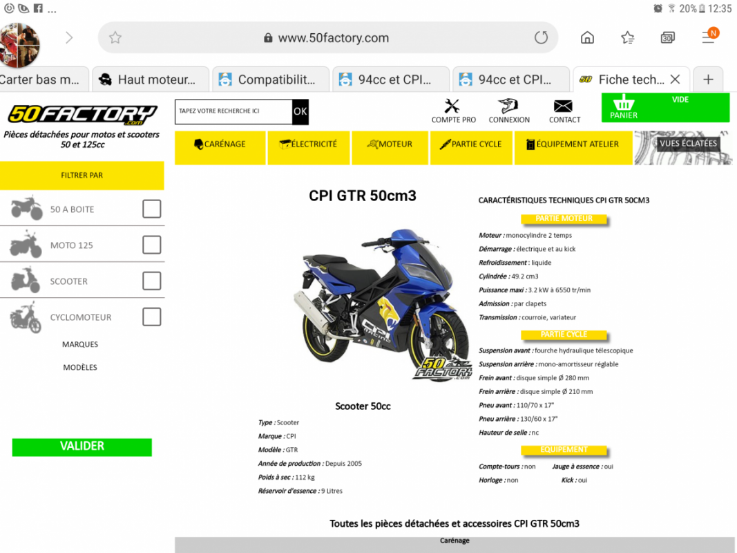 Bonjour tous le monde :-) Je suis nouveau ici et j'ai besoin de vos lumière, il y a quelque temps fini un moteur de nitro en 94cc que j'avais prévu de mettre sur une partie cycle de malaguti F10 non sans mal car entre les modif de fouche, de balancier, et les autres bricole on ce rend pas toujours compte mais c'est du temps de passé. Donc tous est fini je démarre le scooter je fais un essai et la il ce passe ce que j'appel l'effet SPITRO c'est à dire conduite assise et ressenti tro bizarre plus la puissance du moteur..... bref ça me plait pas je trouve ça plutôt ingérable car trop légé, trop court. Comme je suis pas du genre à me démonté bien que déçu je me dis tempi je vais changer de cycle et j'ai donc pensé à un F15 ou un Area51 les 2 sont plutôt rare et sa serais dommage dans détruire 1 en bon état et en cherchant je suis tombé sur le CPI GTR du coup je me demande si mon moteur passe la dessus ? ça me semble une bonne idée le cadre tubulaire, le gros radiateur d'origine, pas mal de place, l'assise a l'aire pas mal mais la roue arrière est aussi plus grande il y a 2 amortisseur a l'arrière du coup me voilà.