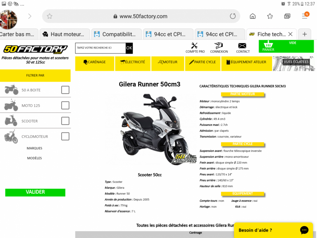 Sa dépend de ton secteur en france aussi, mais d'après mes précédents recherche et le leboncoin dans toute la France il en a même pas 50 et les prix tourne entre 500/800 en air de mon les année et édition contre 650/1800 pour les liquide dans la zone il y en a 3 de 850 je pense que c'est un air et les 2 autre en liquide a 1100 et 1250.... sachant que les scooter on en général était touché de partout alors que le mien appartenait à une personne âgée il est intégralement d'origine. Mais il faut que je vois cette histoire de batterie qui recharge pas, la mienne est neuf et je les mise sur un autre elle charge parfaitement alors c'est soit le CDI ou l'allumage au pire.... Puis 2 ampoule à changer et plaquette de frein avant je pense sa freine pas sa ralentit fin j'ai pas encore regarder. Je pense que je serai dans les bon prix. Bien le stage6 est à 19cv aussi il me semble, perso j'ai plus l'habitude du polini mais j'ai enviede testé l'autre pour voir oui avec la bielle stage6 et la pipe ça peut être marrant après je vais voir ça, j'ai un pote qui a un carter court avec un evo 3 ça peut être marrant de voir la différence sa configuration sera similaire mais lui a le dd sans batterie..... dailleur in doit pourvoir le faire fonctionne le dd a batterie sans faisceau ?