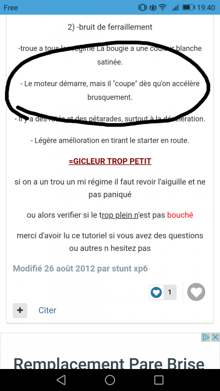 J'ai changé le starter le véhicule ne cale plus mais je crois que je suis encore trop pauvre faut que j'augmente le gicleur. -