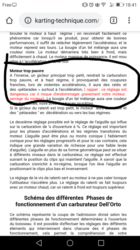 Bonjour je reviens pour vous informer de mon avancée sur mon problème de scooter qui cale et qui pète. Après plusieurs test je suis actuellement en gicleur de 90 Sur Dell'Orto 17.5 et je suis encore un peu pauvre mais le scooter ne cale plus et ne pète plus. J'ai aussi mis une bougie neuve. Je vais donc augmenter le gp peut être 92 ou 95 pour voir je vous tiens au courant si ça vous intéresse. -