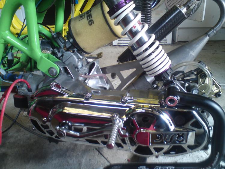 12. Bonjour à tous ! Petite commande recue , donc bah photos du nouveau poste de pilotage et de mon nouveau carter :love: Par contre je viens de passer une demi heure sur le montage du ressort , j'ai laissé tombé avant de tout casser dans mon garage , c'est vraiment la galère a mettre , et c'est tres dur de pas s'énerver a 18h quand on a commencé a 4 du mat' un lundi :D Dans les prochains jours , montage de la roue arrière , poncage des coques , un coup de stylo blanc sur les inscriptions des flanc de pneus , et petite vidéo , peut être avant le weekend, des premiers essais sur route.