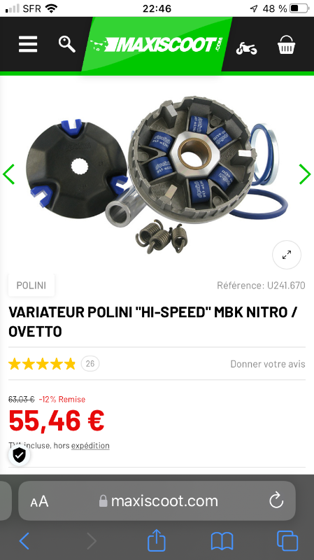 4. Bonjour, j’ai un mbk Mach g Air de 2008, il est équipé d’un pot yasuni R débridé mais que au niveau de l’entrée pas la cartouche, le carburateur est d’origine le gicleur a été augmenté… j’avais 3 question vous me conseille d’acheter un kit 50 polini d’abord ou un variateur complet avec embrayage ressort de poussée et tout ? Si je prend un des deux faudra-t-il changer de carburateur ? Et dernière question me conseillez vous de débrider la cartouche ? bonne soirée et merci d’avance