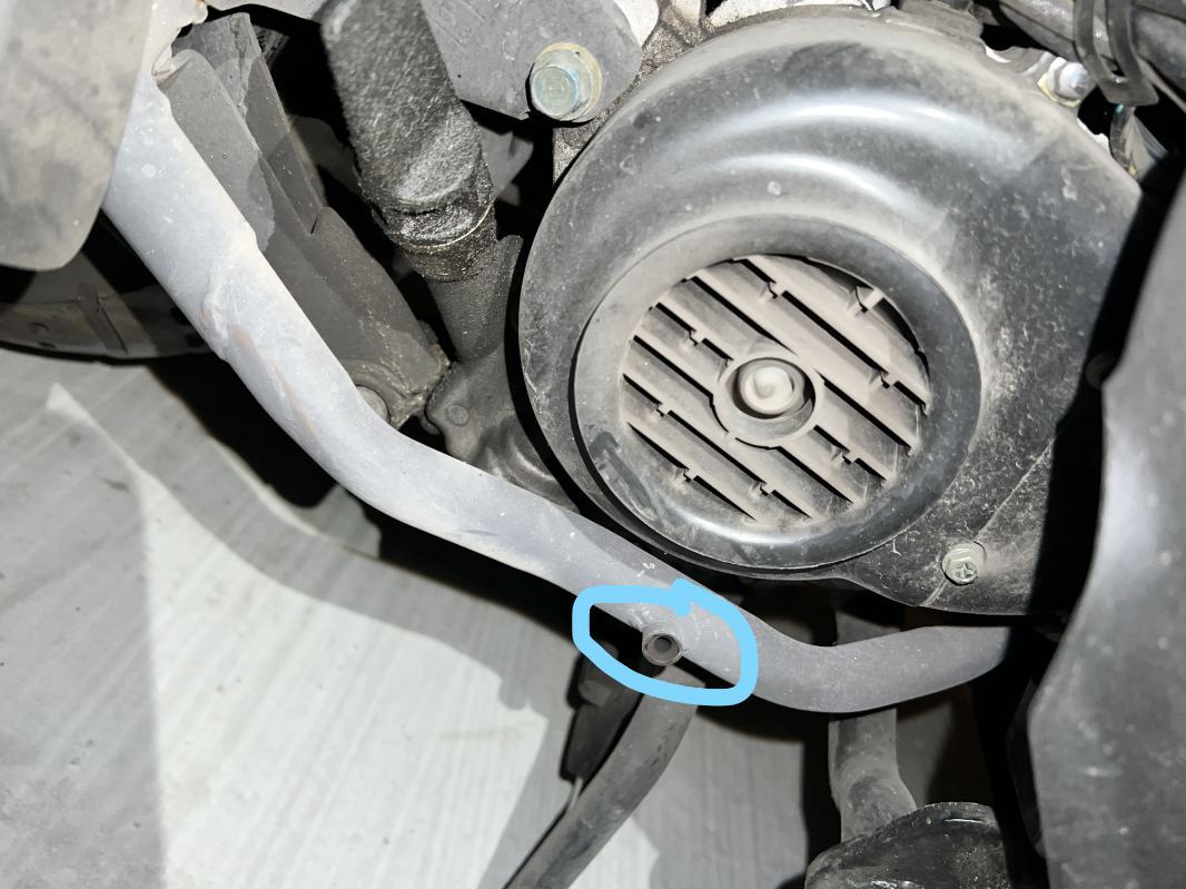Au niveau du pot d'échappement, sur le tuyau qui le relit à une valve de sortie du scooter, il y a un trou où je pense est supposé se trouver une vis/boulon sans ou avec filetage, je n'arrive pas à bien discerner. Je sens de l'air en sortir et vu qu'il n'est pas bouché, le scooter fait un bruit d'enfer, c'est infernal..