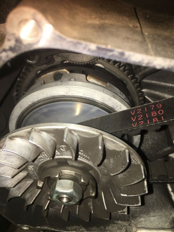 Ok, merci pour tes réponses. concernant le pot, c’est un pot Doppler que le mec a monté dessus. Concernant la variation, je ne sais pas ce qu’il a fait. pour le gicleur j’ai volontairement mis plus gros pour la lubrification et aussi aider au refroidissement du cylindre/piston. Comme la variation est mal réglé ça le sollicite beaucoup. Dis moi si ça ne sert à rien, je redescend maintenant. Du coup j’ai commandé ce qu’il fallait pour démonter mon variateur et des galets de 5g et 5,5g (je n’avais pas vu ton message avant et comme je ne sais pas ce qu’il a mis je suis parti de l’origine et légèrement en dessous). je viens de démonter pour prendre un peu d’avance et force est de constater qu’il y a de la poussière noir partout… sûrement dû à la courroie que j’ai mesurée et elle est à 15,2mm et les écritures sont tout à fait lisible. Qu’en pensez vous? À quel moment une courroie est bonne à changer? Comment savoir si celle-ci est trop longue? merci d’avance pour les réponses -