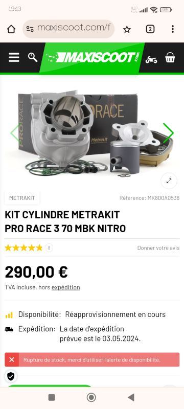Bonjour j'envisage d'acheter un 70 metrakit pour un nitro Est ce que ses cylindres sont fiables comme les Polini ou malossi Et si c'est performant? J'ai eu un airsal les diagrammes étaient tellement bas qu'il avait rien dans le sac En pièce jointe le cylindre qui m'intéresse