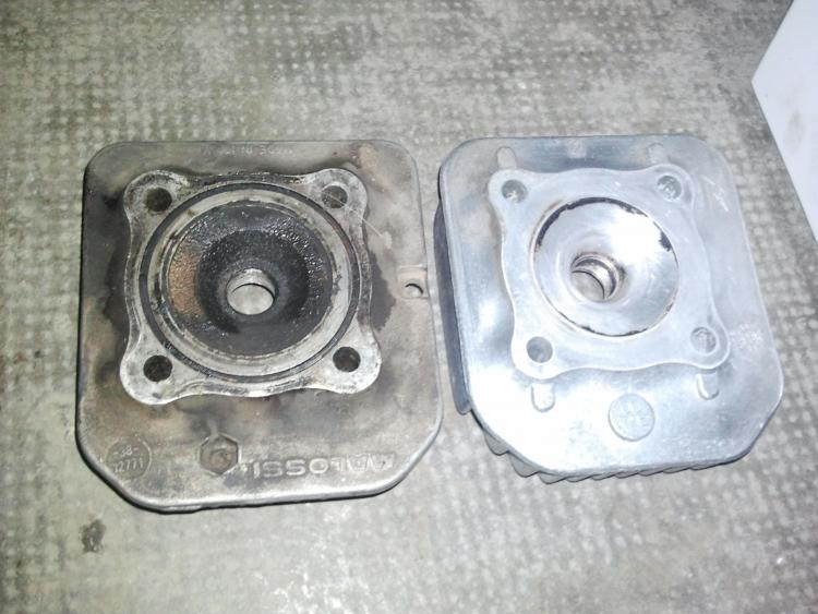 Salut a tous, après pas mal d'absence je revient pour achever le spirit caméléon quelque news en photo ... Petite commande sur MXS, arache volant pour allumage nouveau model et HM toxik adaptable origine : L'arache volant motoforce : Le HM toxik adaptable 49.9cc : (on vera bien ce que ça vaut) Finition pas génial, pas mal de défaut de fonderie, et je trouve que le nikasil n'est pas génial a l'oeil, on a l'impression que l'intérieur du cylindre et brut ... Le piston : (double segment bien évidament, c'est de la fonte) Le second bas moteur qui viendra prendre place sur le spirit : (moteur de 2008, trés sale, mais dans un état flambant neuf !) Le bas moteur démonter, prés a recevoir l'allumage ancien model, et le HM tout neuf L'allumage qui été sur le nouveau moteur : (sacrément neuf, ça a été changer tout récement) ET CELUI LA ... il a une patte de pot ... lol Ensuite démontage du moteur sur le spirit : ET LA ... Surprise !!! cylindre et piston HS de belle grosse rayure a l'intérieur : voilà ou en est le moteur du spirit a l'heure actuel, tout et remonter prés a tourner, il ne reste plus que l'allumage et la carburation (carburateur + BAA) : Et voilà le petit spirit avec sont moteur démonter, que j'ouvrirais un peu plus tard (si j'ai le temps) pour changer roulement + joints spy et carter moteur : voilà pour le moment je me remet dessus demain matin si je peux, et il devrait étre fini et roulant, en éspérant qu'il ne fasse pas froid, en ce moment ont a un temp pourri et des température de fou dans l'est ;) Sur ce a vos clavier et a demain :cool: -