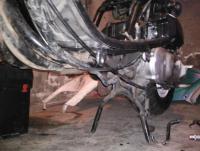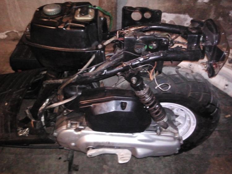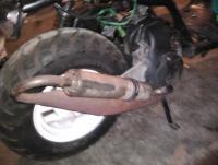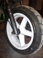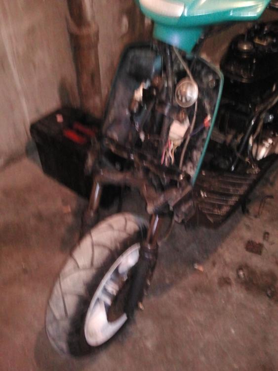 Merci a toi Pour les sticker j'hésite a les retiré, l'idée me sembler sympa quand je l'est faite, mais la ça fait un peu surcharger donc ça va sûrement degager Merci Le spirit deverait étre sur les route demain, il commence a déja bien revivre Merci pour les com's, La vidéo viendera quand le spirit sera roulant et remonter, donc sortable quoi ;) Comme vous avez été zentil, je vous glisse des photo et un récap du boulot fait aujourd'hui : Déja ont change culasse, boîte a clapet et pipe d'admission ... Mais avant ... nettoyage : Ensuite démontage : voilà la différence : après tout sa j'ai redémarré le scooby, seulement problème, il broute comme pas possible et des retour d'allumage se font, j'avait d'abort penser au carburateur pensant que le soucis venais de la, mais ce n'été pas sa, alors j'ai changer l'allumage : l'ancien : (bien cracra degeu et qui colle au pattes ... lol) et le nouveau remonter et brancher pret a étre démarré : MIRACLE !!! le scoot n'as pas chercher plus loin, 2/3 coup de kick et paf s'été parti il a démarré niquel n'as pas beuger et il et pret a rouler Du coup on remonte le moteur complet, ainsi que les cache de celui ci : PETITE BEMOL !!! j'ai eut ce bas moteur pour pas un rond, seulement un morceaux du carter et casser (voir photo), et je voulais savoir si ça peut se ressouder, si oui comment et avec quoi ? : Au pire des cas je doit avoir un carter d'allumage qui traine, je pourrais donc le changer, et changer par la méme occasion les roulement et les joint spy après, n'ayant qu'une jante de rocket 12", j'ai decider de monter les 2 jante de next qui trainer chez moi, histoire de le rendre plus propre (et surtout de ne pas rouler avec du 10" a l'arriére et du 12" a l'avant) Une fois la roue avant tomber je trouver bizar de galéré autant a sortir un axe ... j'ai vite trouver ou été le problème après "ou est charlie" trouver ou est l'erreur ... : Le gagnant aura droit a un bonbon (ne me remerciez pas ça me fait plaisir ... :lol: ) Demain je chercherais donc un axe de roue pour monter celle superbe jante de next : (en attendant de trouver une roue arriére 12") Histoire de faire les chose correctement j'ai voulu faire le mec bien (du genre "aïe lauve la sécurity" :lol: ) j'ai jeter un coup d'oeil sur les plaquette de frein ... : :o :s J'ai pu de plaquette mais au moins ... j'ai du fer plat .... J'ai aussi un vieux guidon qui trainer chez moi, il s'avére que c'est une guidon d'origine de rocket, ayant obtenu une téte de fourche compléte avec le bas moteur je vais donc la repeindre ce soir pour mettre une belle téte de fourche de rocket : Téte de fourche qui viendra remplacer celle actuel de stunt : (que je n'aime pas du tout et qui sera revendu) voilà donc pour le boulot du jour, je recommence demain ... Ce qui deverait étre fait demain : - Remise en état propre du faisceaux - Faire une patte pour le pot (en attendant de refaire ou changer le carter d'allumage) - Remonter la roue avant - Changer guidon + téte de fourche - Peindre la téte de fourche de rocket (je fais sa des maintenant) - Acheter des plaquette de frein (si j'ai le temps) - Remonter tous les carénage Merci a tous, et a demain @+! -