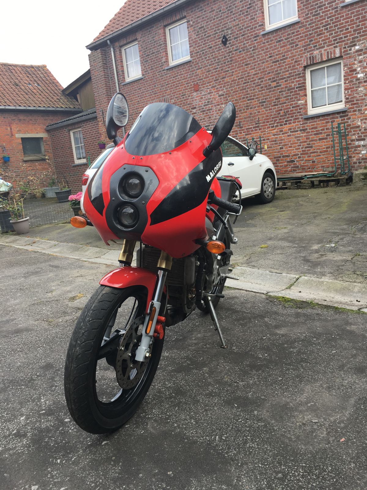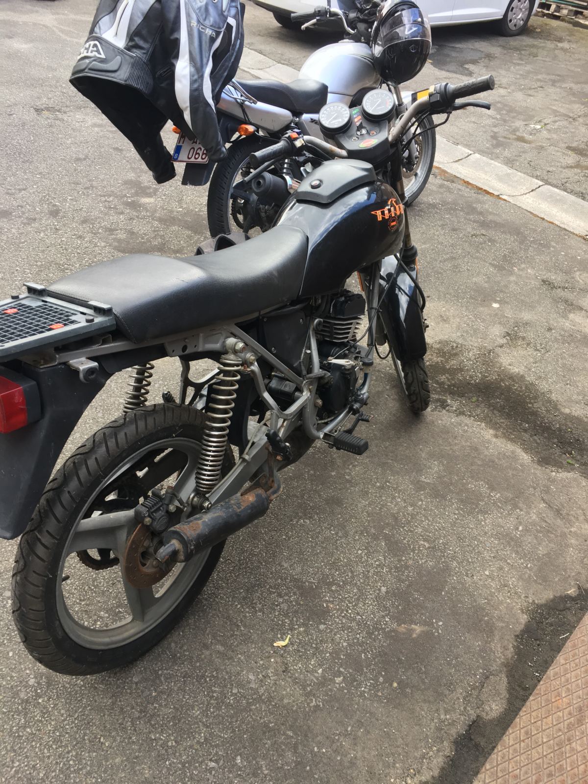 5. Bonjour à tous ! Me revoilà après un long moment d'absence avec un nouveau projet de restauration. Pour ceux qui avaient suivi, le précédent concernait une GPR replica. Je l'ai vendue récemment car, bien qu'étend attaché à elle, je n'arrivais pas a me décider à rouler avec. Le kit 80cc y étant pour quelque chose et la position de conduite aussi . De la semaine je suis allé voir cette dite Derbi Fénix et le lendemain elle arrivait dans mon garage pour de nouveau pas grand chose ( 170€ ). Elle est dans son jus mais un "bon" jus malgré quelques carénages manquants mais je la préfère sans de toutes façons. Elle totalise 14XXX Km et est totalement d'origine. Seul bémol il fallait refaire les papiers, procédure qui est déjà faite et j'aurais le certificat de conformité sous peu. Bon ce que j'ai prévu n'est rien d’exceptionnel, une remise en forme de l'ensemble sans trop de modification de moteur :). Ce qu'il y a à faire: - Check générale du moteur ( changer les joints qui en ont besoin) - Peinture de la culasse (Noir) - Peinture du châssis (Gris métal) - Rebrancher le fils du capteur de niveau d’essence - Remise en ordre des freins - Changement joints spy de fourche - Remise en état du pot (peut être en monter un autre?) - D'autre modification s'ajouteront pour sûrement niveau esthétique. Merci à ceux qui suivront et réagiront sur le projet, je vais faire en sorte de plus détailler le sujet que ce que j'ai fait auparavant.