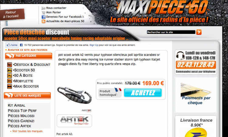 bonjour a tout le monde, voilà j'aimerai savoir si scooter-pièce ( un site de vente de pièce de scooter ) était un site fiable , voilà parce que les prix qu'il propose sont très attractif ; voici une petite différence de prix entre scooter-pièce et maxi-pièce: MAXI-PIÈCE SCOOTER-PIÈCE