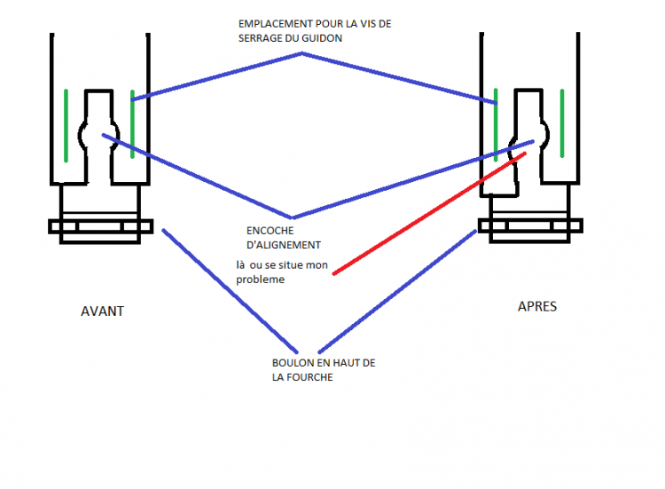 suite à une tentative de vol, le guidon de mon scooter est tordu il n'est plus dans l'axe. j'ai tenter de voir si je pouvais le redresser mais c'est impossible , la pièce est tordue à l'endroit de la vis de serrage et de celle d'alignement (c'est l'encoche d'alignement qui est foutue.
