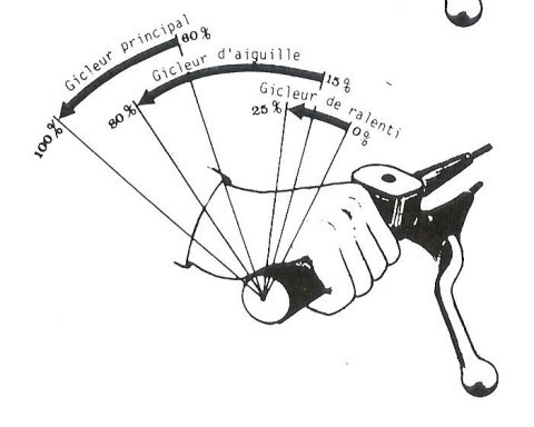 Si tu veu si je met deux tour sa broute un peu j'met 3 tours le régime monte, j'met 3tours 1/2 sa augmente et sa reaction et franche